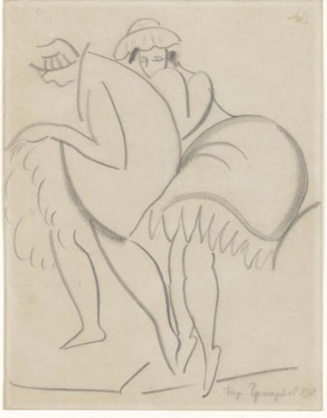 | Drawing for two dancing ladies from Café Chantant, featured in the headpiece for Intimité, 1918 | |