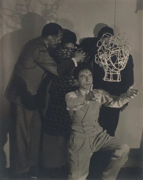 | Jean Cocteau et la sculpture "Débourre-pipes" avec Marie-Laure | |