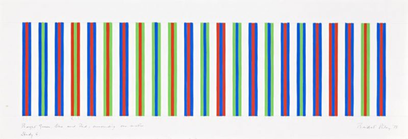 BRIGHT GREEN, BLUE AND RED, SURROUNDING ONE ANOTHER, STUDY 6
