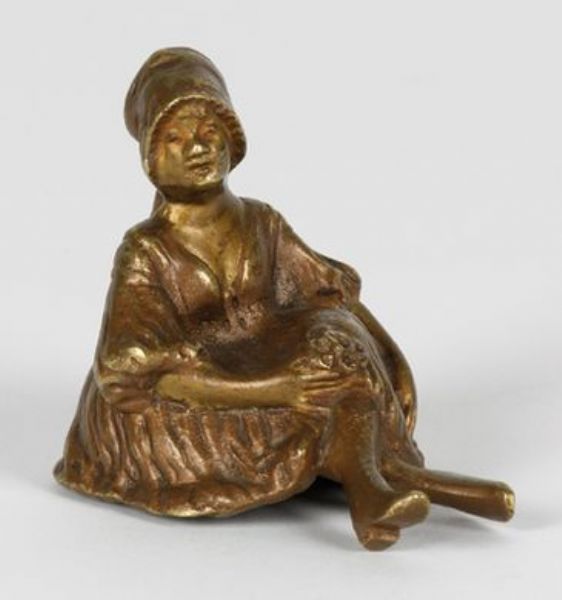 Sitzendes Mädchen mitKopftuch und Blumenstrauß