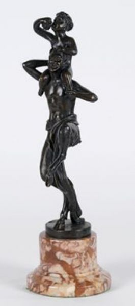 Tanzender Faun trägt einenKnaben mit Weinlaubkranz undWeintrauben auf seinenSchultern