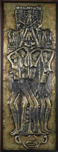 A set of three metal foil reliefs 1.'Emoivbo/Beroma'