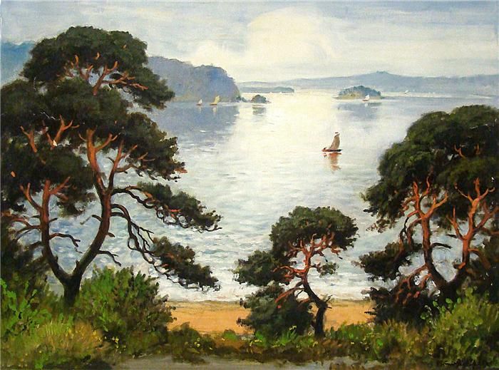 Havellandschaft mit Kiefern und Segelbooten