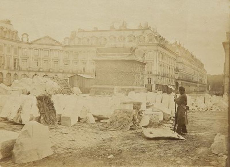 La colonne Vendôme à terre, après sa chute pendant la Commune