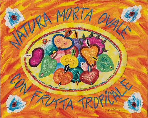 Natura morta ovale con frutta tropicale