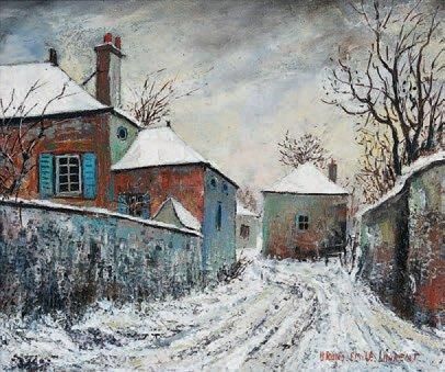 | Entrée de ferme sous la neige Ruillé-Froid- Fond (Mayenne). | |