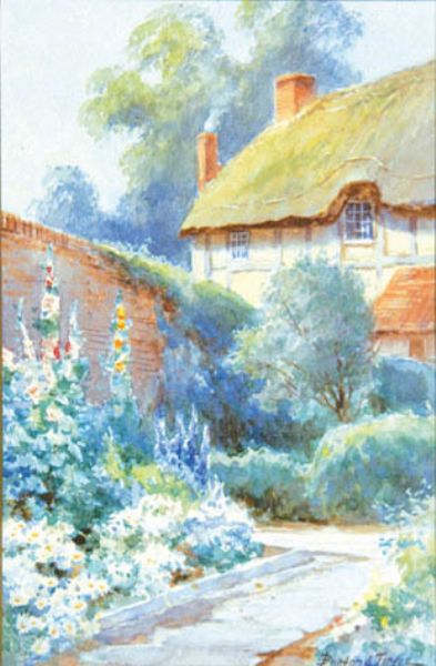 a pair of cottage garden scenes