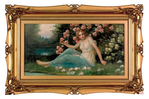 Portrait of a woman in a floral landscape