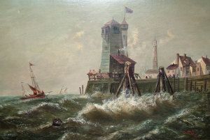 Shipping in rough seas off a jetty