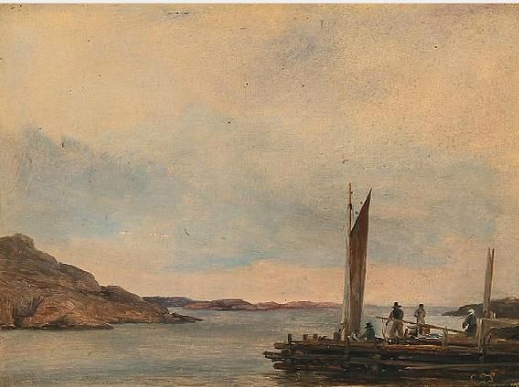 Scenery from Skærgaarden with fishermen by a pier.