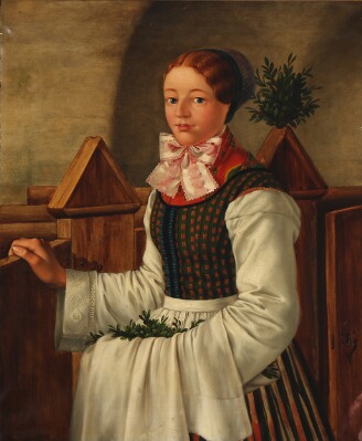 Portrait from a girl from Hedebo on Zealand in traditional dress