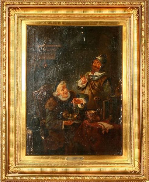 Landsknægtene vejer guld 1853. Two men weighing gold