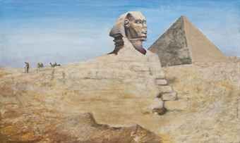 A camel train crossing the Sphinx at Giza
