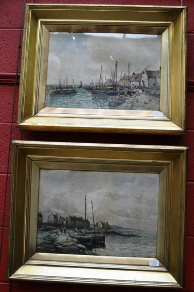 | Fisherfolk on a jetty, Fisherfolk and vessels in a harbour | |