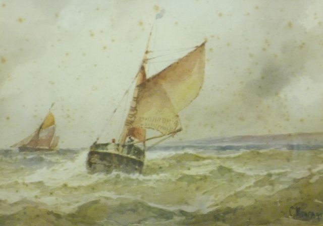 Making for Home vessels on choppy seas sailing towards distant cliffs