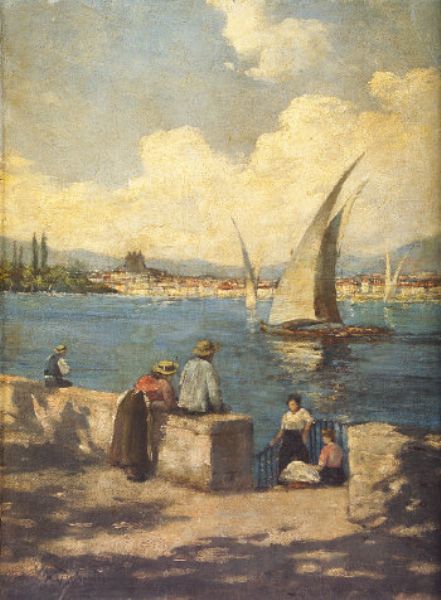 Figures in Port with Boats in Middle Ground