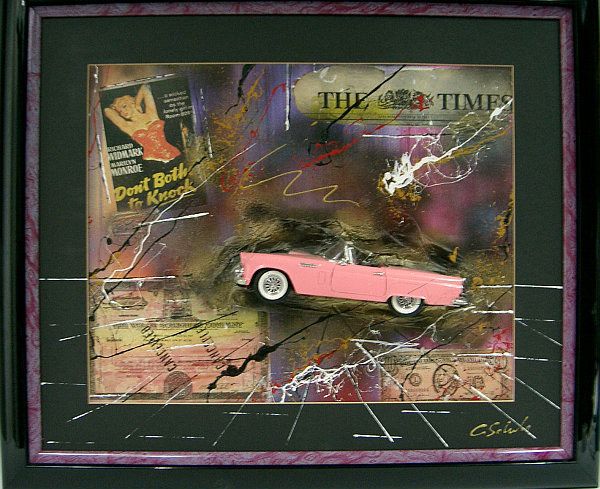 | Dekoriert mit einem Cadillac nach Elvis, Zeitungsausschnitte von Richard Widmark und Marilyn Monroe ´ Don´t Both to Knock´ | |