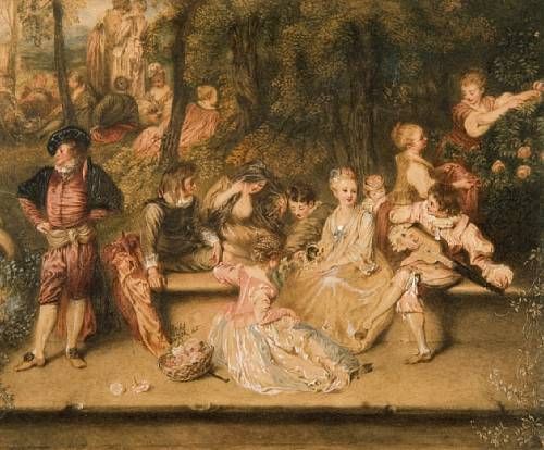 Figures in a woodland setting