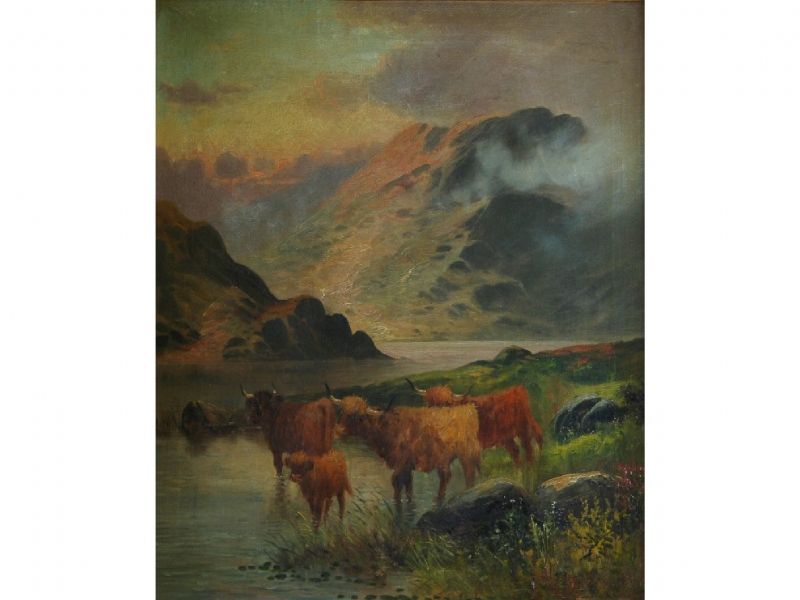 Scottish Highlands with cattle watering at loch sides