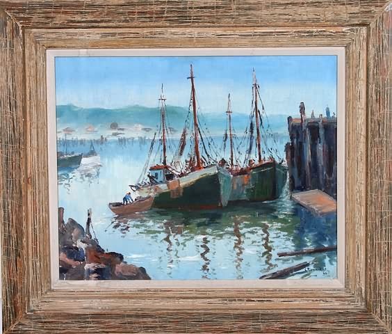 Harbor scene with figure