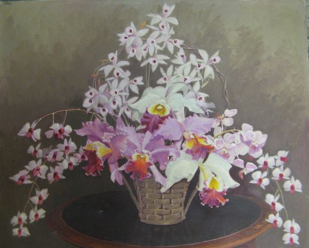 Still life with basket of orchids