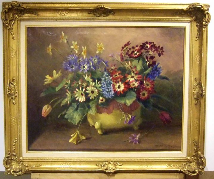 Stilleben med blommor i kruka