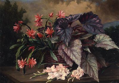 Stillleben mit Kaktus, Gladiolen und Buntnessel