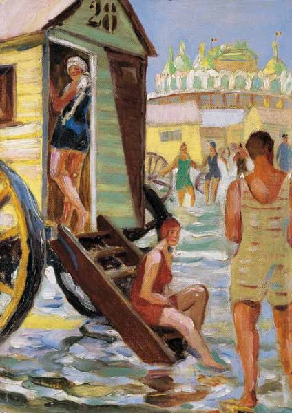 STRANDSZENE MIT BADEWAGEN
