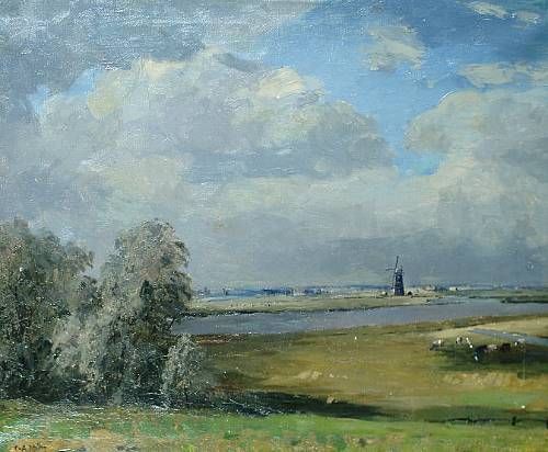 A Norfolk landscape, with windmills