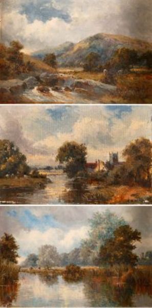 | Above Glen Helen, Isle of Man, Original Study and a Norfolk River Landscape with Cattle Grazing and Church in Distance | |