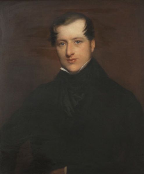 Portrait of a gentleman in black jacket wearing black cravat