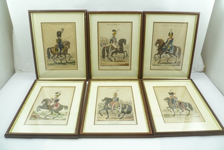 a set of six hand coloured engravings of early 19th century cavalry soldiers