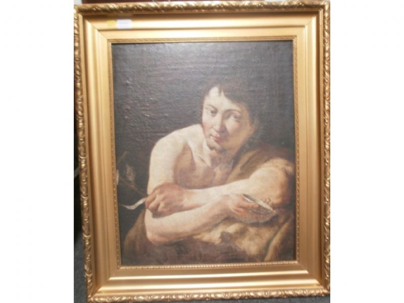 | A half length portrait of St John the Baptist, holding a shell and a crook and resting on a fleece | |