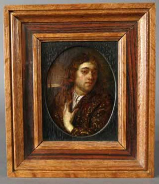 head & shoulders portrait of a gentleman in an oval surround & moulded frame