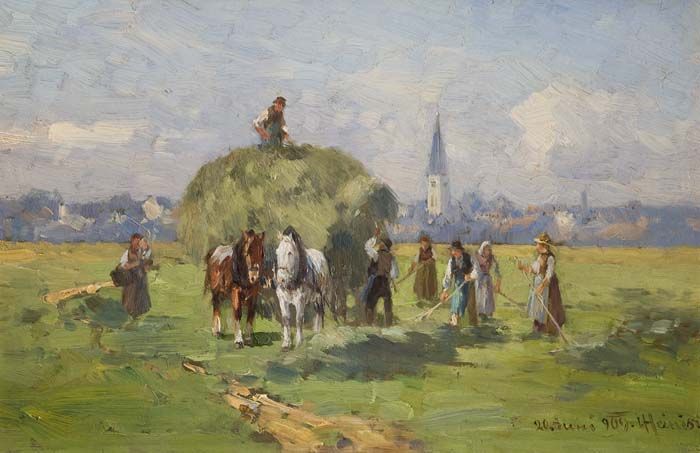Heuernte an Gebirgs- See