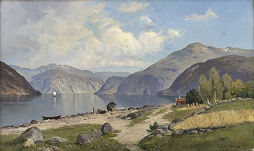Fjordlandskap med folkeliv