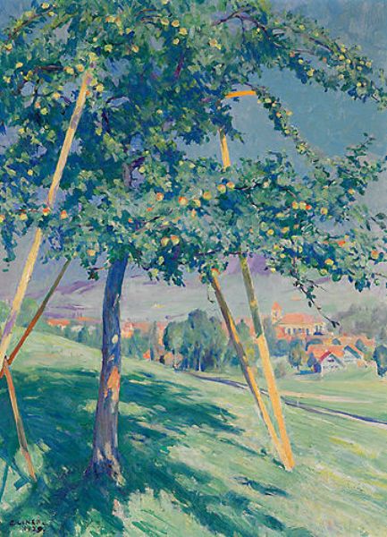 | Apfelbaum. Im Hintergrund Appenzell mit Kirche | |