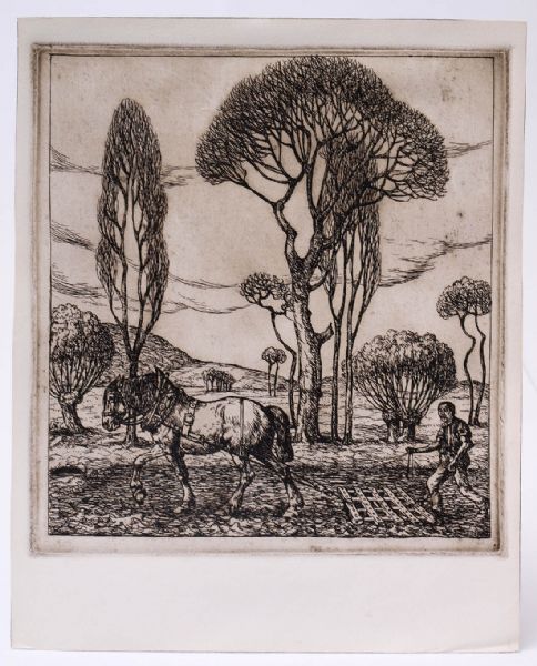 Pflügender Bauer mit Pferd