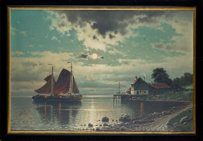 Holländische Fischerboote mit roten Segeln in weiter Bucht