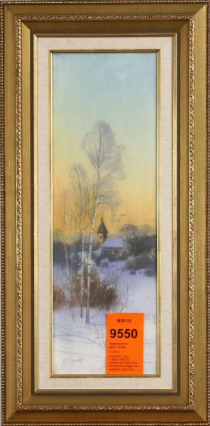 Vintermotiv med kyrka samt Sommardag med segelbåt