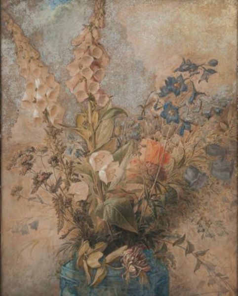 Still Life of Foxgloves and Hedgerow Flowers in A Vase