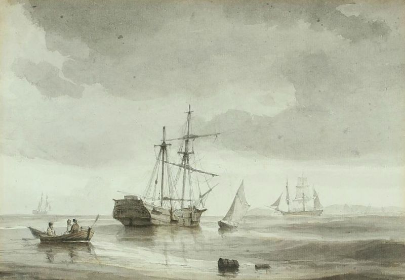 Marine with shipwreck. Grisaille.
