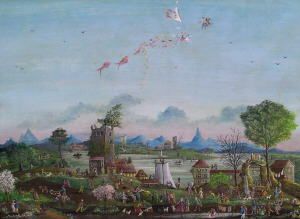 Sommerlandschaft mit buntem Treiben