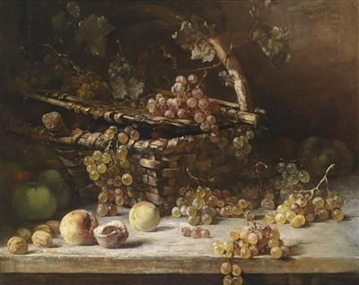 Basket with Grapes and Peaches