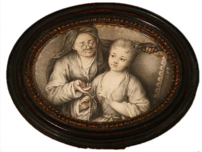 Young girl learning how to thread pearls