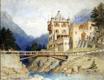 Oberwesel Schloss am Gebirgsfluss mit heimkehrenden Landsknechten