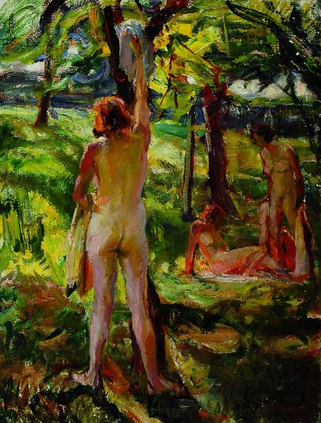 Drei Frauenakte im sonnigen Park