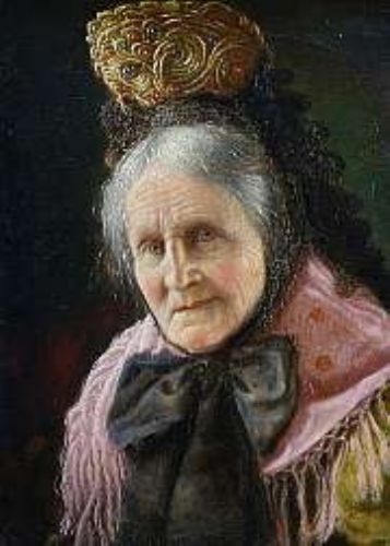 'A gentleman writing with pen and ink' and 'An elderly woman with an elaborate bonnet'