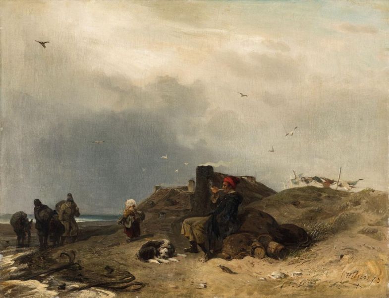 Beach Scene with a Pipe Smoker