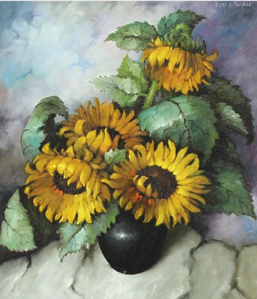 Still life with sunflowers in a vase